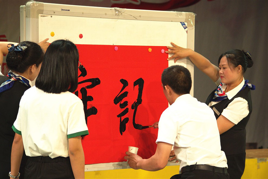 黨員在舞臺上朗誦紅色經(jīng)典詩詞、現(xiàn)場書法展示,把比賽現(xiàn)場的氛圍推向新的高潮。通過參加紅色經(jīng)典誦讀活動,黨員們的心靈受到了震撼,思想得到了洗禮,精神得到了升華。新城投資集團黨支部將堅定理想信念,強化“四個意識”,推進“兩學一做”學習教育常態(tài)化、制度化,以良好精神狀態(tài)為建黨97周年節(jié)獻禮!