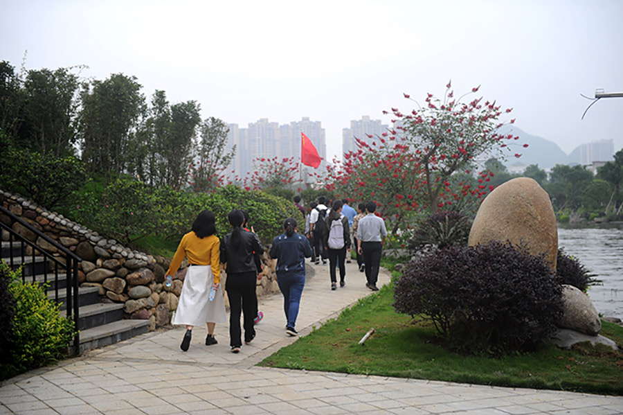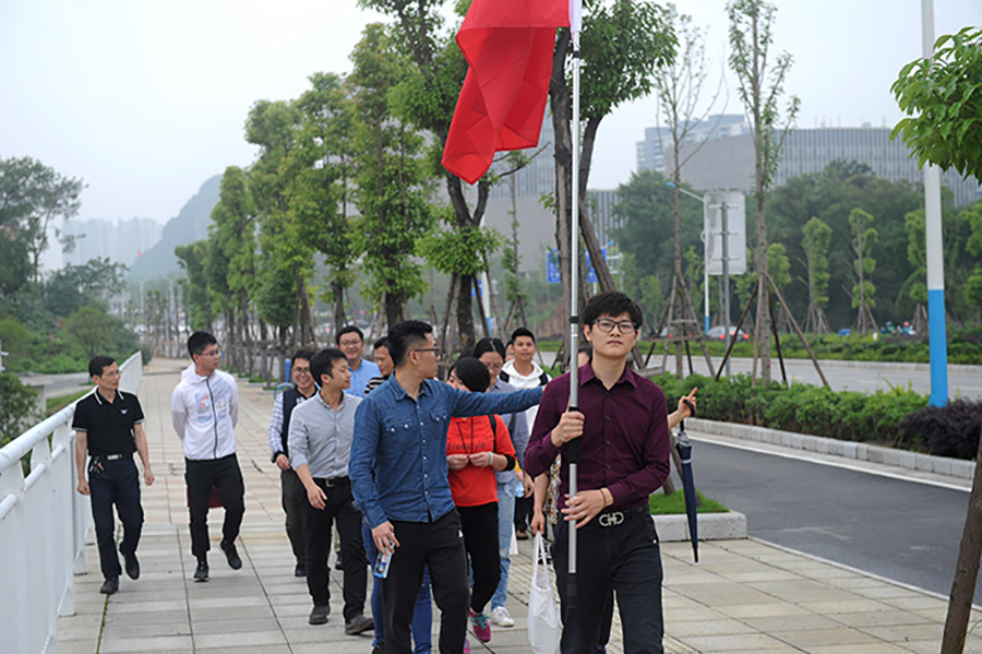 2018年5月4日,是“五四”青年節(jié),也是桂林市臨桂新區(qū)核心區(qū)水系正式通航的日子。新城投資集團(tuán)為慶?!拔逅摹鼻嗄旯?jié),以水系通航為契機(jī),組織集團(tuán)公司全體團(tuán)員開展環(huán)“新區(qū)核心區(qū)水系”的徒步活動。集團(tuán)公司黨支部副書記、副總裁鄧仁友,工會主席譚力源等領(lǐng)導(dǎo)參加本次活動。