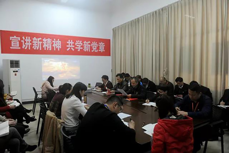 2018年2月28日上午,根據(jù)中共桂林市臨桂新區(qū)工作委員會關(guān)于學(xué)習(xí)貫徹十九大精神學(xué)習(xí)培訓(xùn)工作方案的安排,新城投資集團(tuán)黨支部組織全體黨員、入黨積極分子對新《黨章》進(jìn)行宣講學(xué)習(xí)。新城投資集團(tuán)黨支部書記周道林做《宣講新精神 共學(xué)新黨章》主題宣講,對集團(tuán)公司貫徹落實黨的十九大精神,學(xué)習(xí)領(lǐng)會新《黨章》規(guī)定,把新《黨章》規(guī)定落實到各項工作中等方面工作做出安排。