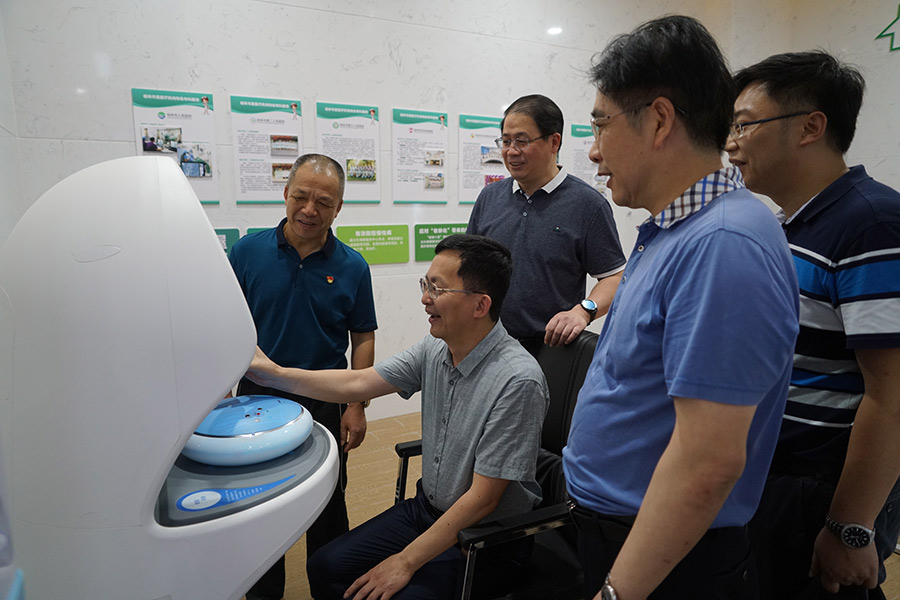 彭東光陪同呂洪安按照黨群服務(wù)中心的參觀路線,依次參觀了職工書吧、健康小屋、時(shí)光隧道、湘江戰(zhàn)役幻影成像、五大黨建版塊、十二縣區(qū)展區(qū)、臨桂新區(qū)展區(qū)、新城投資集團(tuán)展區(qū)、人才家園區(qū)及會議室。呂洪安體驗(yàn)了“零距離”便民服務(wù)的智能健康體檢設(shè)備,連連稱贊,要求紀(jì)檢監(jiān)察綜合業(yè)務(wù)基地也要考慮同樣的服務(wù)設(shè)施。建議在場地允許和時(shí)機(jī)成熟時(shí),在中心二樓打造清廉榜樣展廳,突出黨員榜樣的力量。