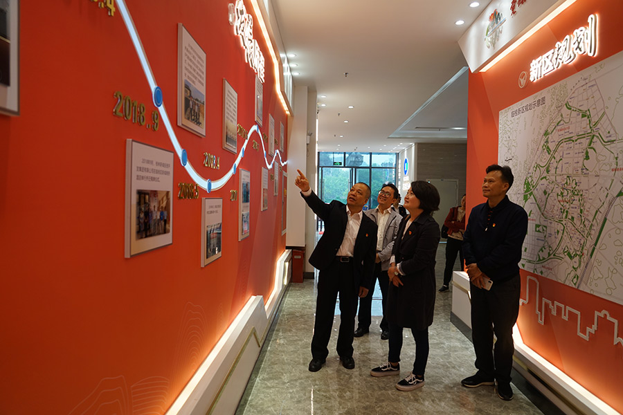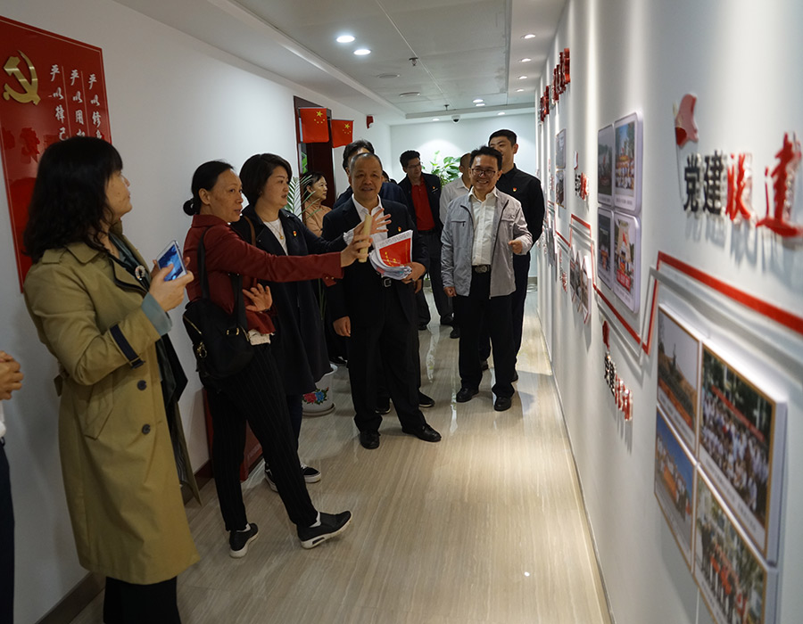 在一樓黨群展示區(qū),肖揚(yáng)燕駐足觀看了公司黨建宣傳片,強(qiáng)烈感受到新城投資集團(tuán)黨支部狠抓黨建、促融資建設(shè)、提員工精神面貌的實(shí)際成效。依次參觀了新城投資集團(tuán)企業(yè)簡(jiǎn)介、企業(yè)文化、集團(tuán)大事記、集團(tuán)組織架構(gòu)、黨務(wù)公開欄、工會(huì)和共青團(tuán)介紹等版塊,不時(shí)與周書記探討與互動(dòng)。在十五樓,肖揚(yáng)燕被走廊兩邊的黨建氛圍營(yíng)造展示墻、辦公室門口的“黨員心語”以及黨員會(huì)議室濃濃的黨建氛圍所吸引,給予高度評(píng)價(jià)。她說,自己從事基層黨務(wù)工作多年,走訪了那么多單位,今天看到的新城投資集團(tuán)黨建展示區(qū)是做得最好的、最有亮點(diǎn)的,充分感受到新城投資集團(tuán)真正將抓黨建付諸于行動(dòng)和實(shí)踐。桂林市黨群服務(wù)中心選址在新城投資集團(tuán)辦公大樓一樓,整棟樓黨建氛圍濃、設(shè)計(jì)起點(diǎn)高、品位雅致、內(nèi)涵豐富,值得臨桂區(qū)直機(jī)關(guān)工委組織下屬單位黨組織過來觀摩學(xué)習(xí)。