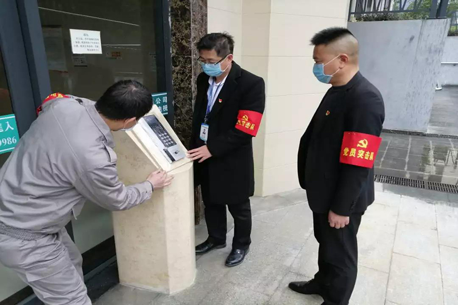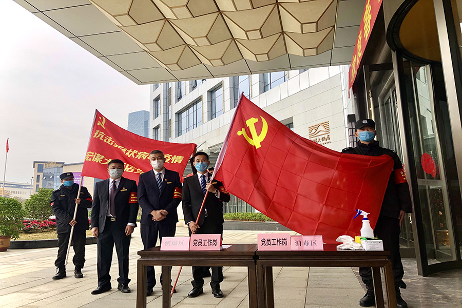 宏謀物業(yè)在防控第一時(shí)間成立了黨員突擊隊(duì),在國惠村黨員示范崗、市民廣場黨員示范區(qū)、游船黨員先鋒號、客服中心黨員服務(wù)窗口等一線,在“急,難,險(xiǎn),重"等工作面前,黨員同志帶頭靠前,充分發(fā)揮黨員的先鋒模范作用,履行共產(chǎn)黨員的光榮職責(zé)。