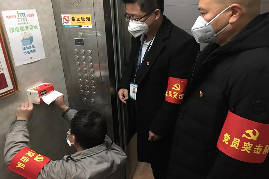 宏謀物業(yè)工程部黨員周成積極響應(yīng)公司黨支部的號召,帶領(lǐng)工程部全員提前返崗,為小區(qū)所有入戶門對講系統(tǒng)及電梯按鍵穿上每天一換的保鮮膜“保護(hù)外套”、為每臺電梯內(nèi)裝上業(yè)主按鍵時(shí)使用的抽紙等,最大程度的做好疫情防控工作,給業(yè)主創(chuàng)造一個(gè)健康、 安心的居家環(huán)境。