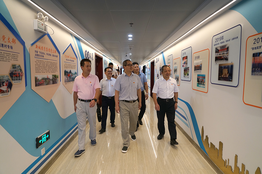 參觀結(jié)束后,周道林匯報(bào)了集團(tuán)公司黨組織通過抓好疫情防控、復(fù)工復(fù)產(chǎn)、黨建帶群建、駐村扶貧、志愿服務(wù)、黨員教育培訓(xùn)、巡察意見整改、“黨旗映勝地”黨建品牌的打造、黨建設(shè)促發(fā)展等方面的工作,實(shí)現(xiàn)了黨對(duì)集團(tuán)各項(xiàng)工作的全面領(lǐng)導(dǎo),黨建引領(lǐng)作用發(fā)揮明顯。 在新區(qū)工委的指導(dǎo)下,集團(tuán)黨組織從2018年至今醞釀和打造了“黨旗映勝地”國(guó)企黨建品牌、2019年又配套提出了“11321”黨建推項(xiàng)目工作法,黨建引領(lǐng)中心工作、黨建帶群建成果得到市委組織部、市國(guó)資委的認(rèn)可,并因此被選為“三個(gè)現(xiàn)場(chǎng)觀摩單位、四個(gè)交流發(fā)言單位之一”,參加了2020年6月16日“全市貫徹國(guó)有企業(yè)基層黨組織工作條例暨黨支部標(biāo)準(zhǔn)化規(guī)范化建設(shè)現(xiàn)場(chǎng)推進(jìn)會(huì)”。在現(xiàn)場(chǎng)會(huì)上,在新區(qū)工委領(lǐng)導(dǎo)下的集團(tuán)公司黨建工作得到了市委組織部、市國(guó)資委和兄弟單位領(lǐng)導(dǎo)的肯定和好評(píng)。