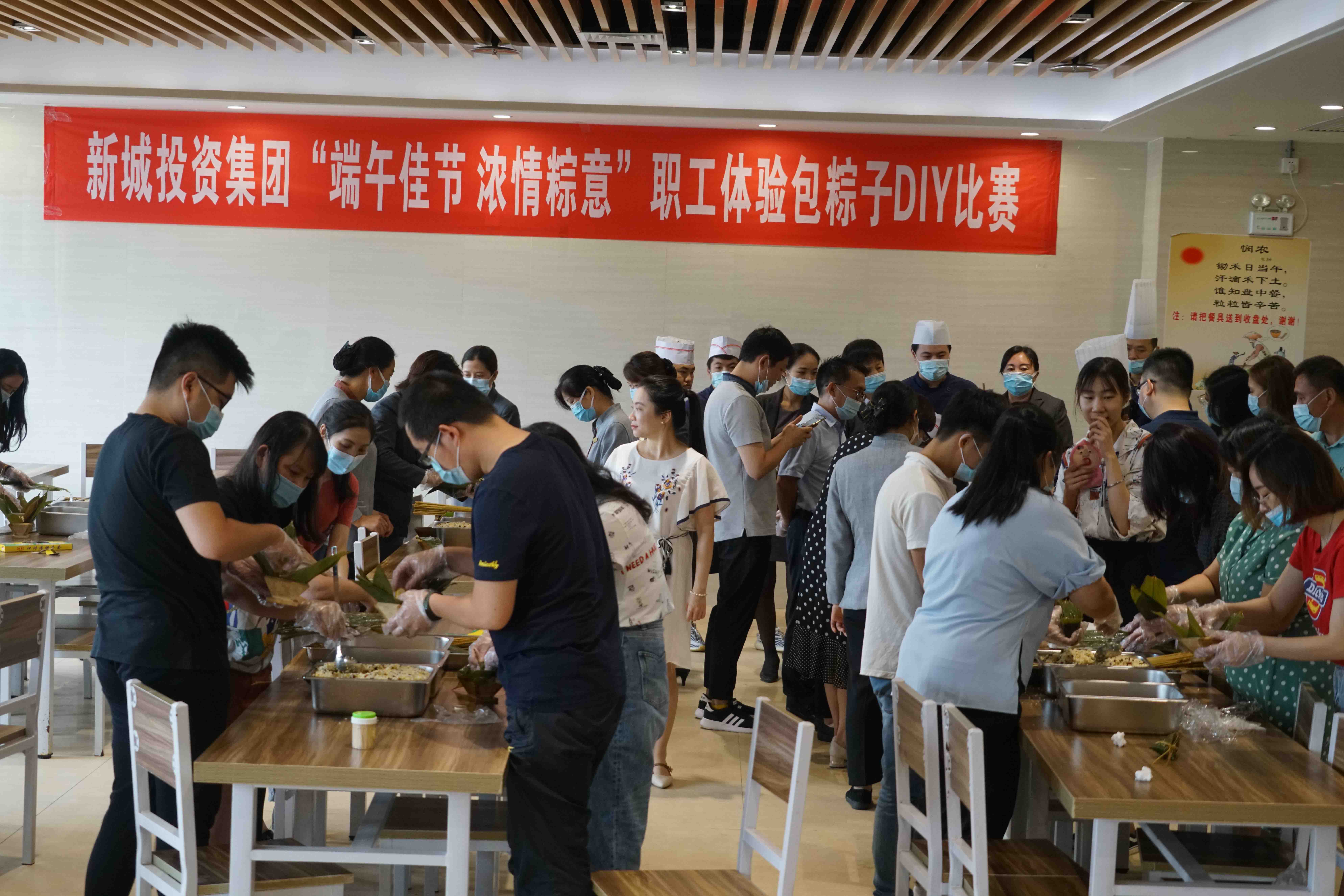 為豐富員工的生活、增強(qiáng)企業(yè)的凝聚力和向心力,檢驗(yàn)黨建帶群建的效果,在新城投資集團(tuán)黨總支的領(lǐng)導(dǎo)和支持下,6月24日,工會(huì)開展“全員參與包粽子”集體活動(dòng),端午佳節(jié)體驗(yàn)包粽子DIY比賽。活動(dòng)分兩個(gè)會(huì)場(chǎng)進(jìn)行,工會(huì)請(qǐng)有包粽子特長(zhǎng)的員工現(xiàn)場(chǎng)示范、手把手傳授包粽子的實(shí)用技術(shù)。員工通過互助互學(xué)、體驗(yàn)傳統(tǒng)文化,感受集體學(xué)習(xí)的力量和節(jié)日氛圍。