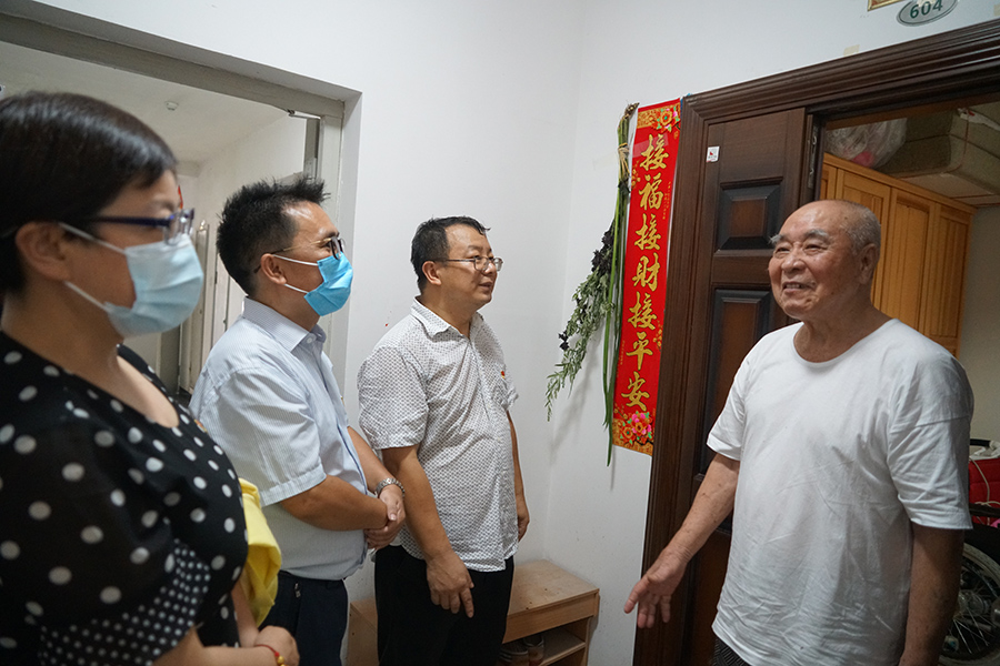 上圖為慰問組慰問九十多歲高齡社區(qū)老人