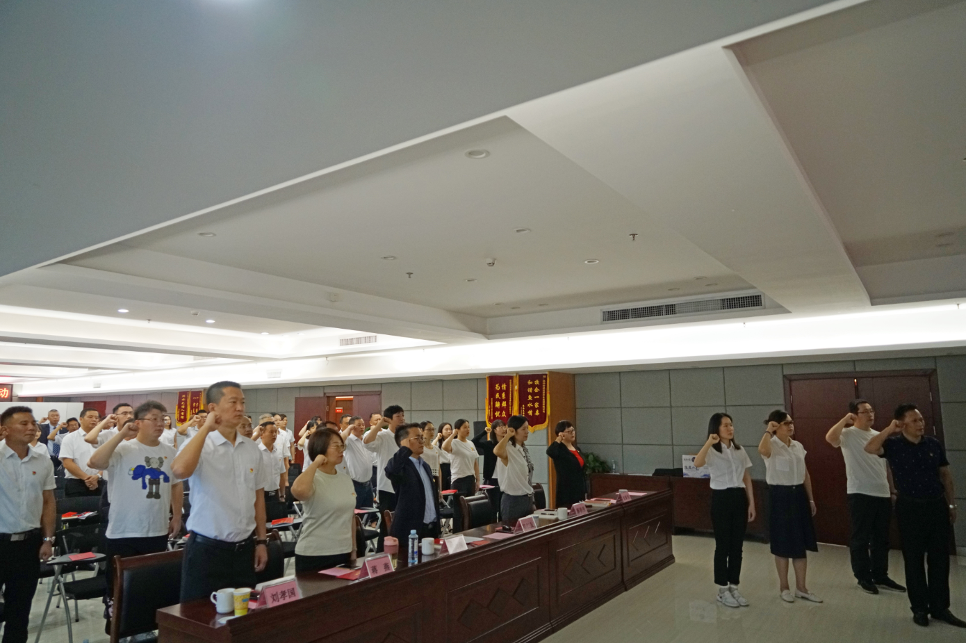 為引導(dǎo)黨員繼承發(fā)揚(yáng)老一輩革命家光榮傳統(tǒng),激發(fā)新黨員激情斗志,會(huì)場(chǎng)組織新發(fā)展的3名黨員周恒旭、劉萍、梁慧穎舉行了入黨宣誓,同時(shí),全體黨員重溫入黨誓詞。