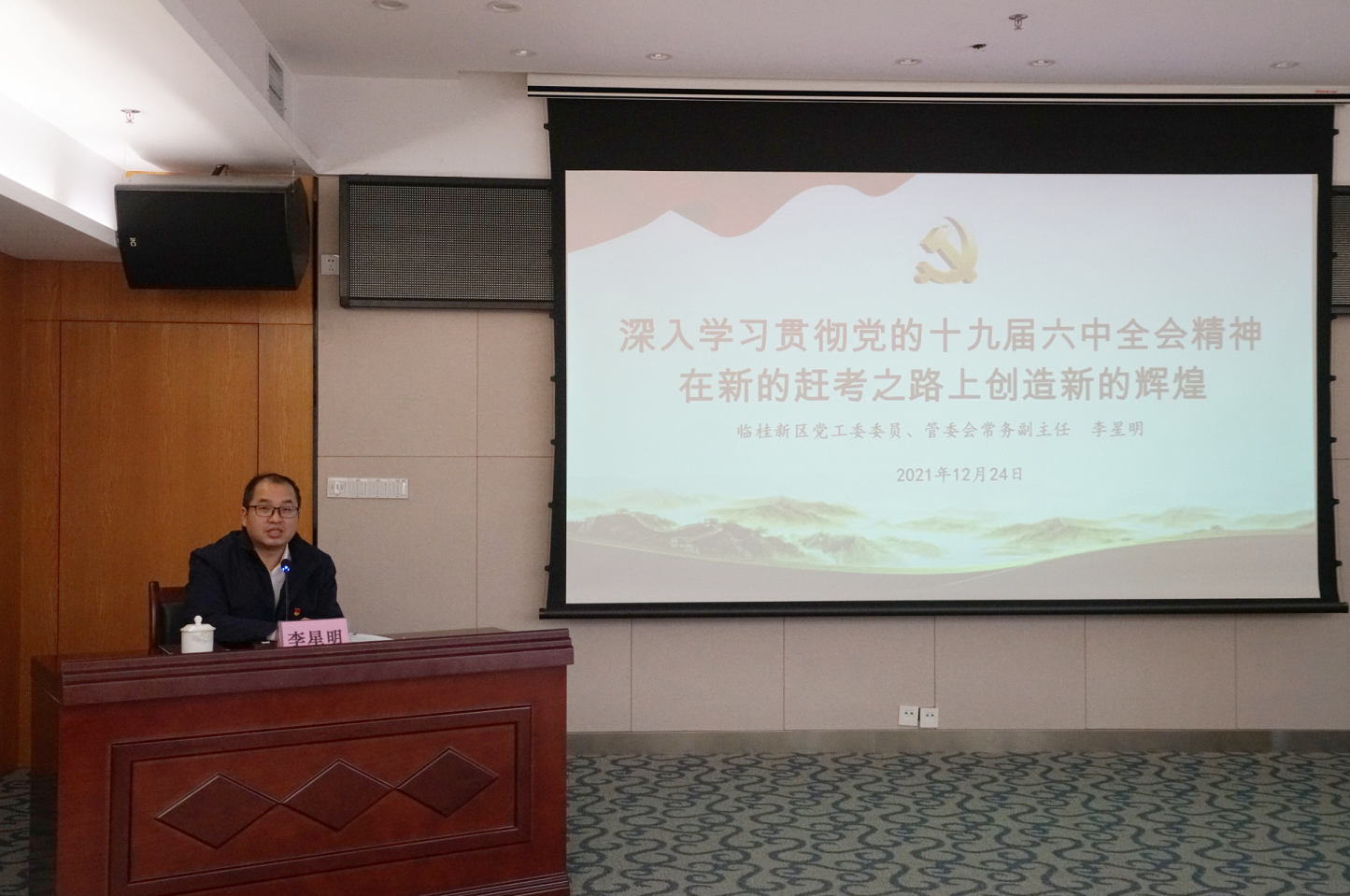 為深入學(xué)習(xí)貫徹黨的十九屆六中全會精神,按照臨桂新區(qū)黨工委統(tǒng)一部署,2021年12月24日,臨桂新區(qū)黨工委委員、管委會常務(wù)副主任李星明到新城投資集團(tuán)作黨的十九屆六中全會精神宣講報(bào)告。新城投資集團(tuán)黨總支書記、董事長周道林主持會議。