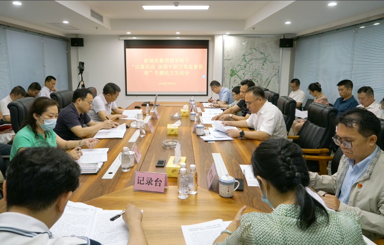 2022年7月12日,新城投集團(tuán)召開領(lǐng)導(dǎo)班子“以案促改 加強(qiáng)干部日常監(jiān)督管理”專題民主生活會(huì)。臨桂新區(qū)黨工委委員、管委會(huì)副主任、機(jī)關(guān)黨委書記蔣玖明,市紀(jì)委監(jiān)委駐臨桂新區(qū)管委會(huì)紀(jì)檢監(jiān)察組三級(jí)調(diào)研員唐良平及臨桂新區(qū)黨工委組織人事部部長(zhǎng)梁利組成督導(dǎo)組現(xiàn)場(chǎng)到會(huì)指導(dǎo)。會(huì)議由新城投集團(tuán)黨總支副書記、總經(jīng)理黃峻主持。
