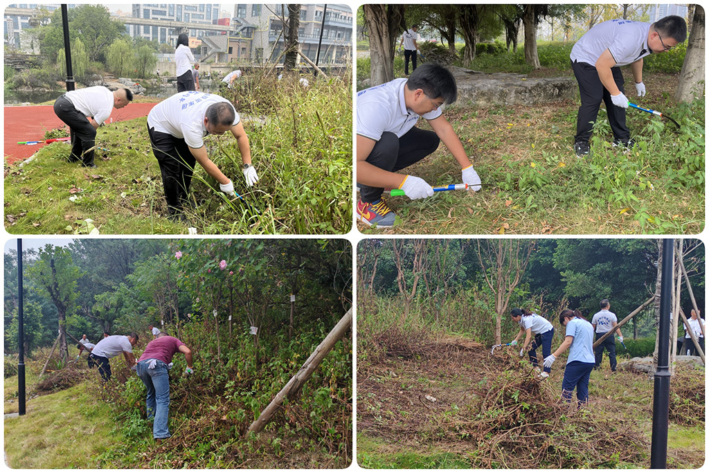隨著動員令的下達,集團公司領導班子成員親自掛帥,全體黨員迅速分為三支“生態(tài)衛(wèi)士”隊伍,大家手持鐮刀、鐵鍬、掃把等工具,彎下腰、俯下身,全面投入到割雜草枯草、清除草叢雜物、清理地面垃圾、清運垃圾等各項“洗臉”活動中,以實際行動踐行了“綠水青山就是金山銀山”的理念。