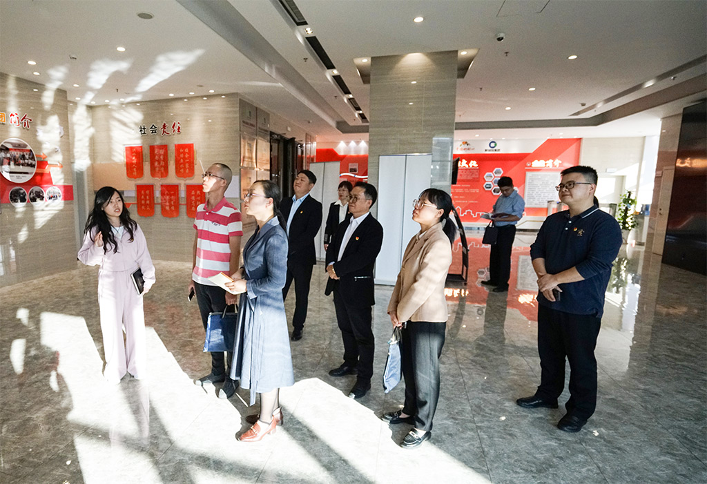 孫敏一行來到新城投集團一樓,在“黨建小蜜蜂講解員”的引導講解下參觀了公司宣傳展示專區(qū),詳細了解公司的發(fā)展歷程、主要成就、“黨旗映勝地”黨建品牌集群及配套“11321”工作法。孫敏對新城投集團在桂林新區(qū)建設作出的重要貢獻、取得的優(yōu)異成績表示稱贊。