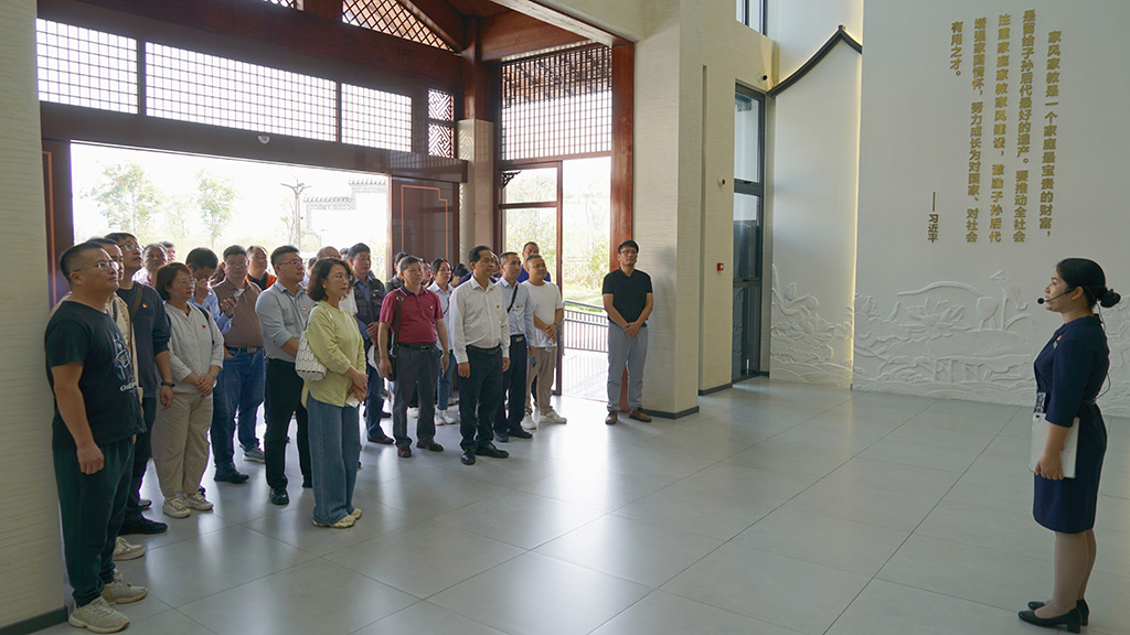 黨課結(jié)束后,駐桂林市工作隊與新城投集團全員在講解員的帶領下,依次參觀了廣西家教家風基地先賢家風、紅色家風、時代先鋒展廳。通過觀看一系列珍貴的歷史照片、泛黃的家書以及深刻的家訓,仿佛與古代先賢、革命前輩時空對話,領悟他們堅定信念和崇高品德,深刻感受家風家教在傳承紅色基因、弘揚革命精神中的重要作用。大家紛紛表示,基地中蘊含的家教智慧、廉政思想和優(yōu)良家風,值得如今每一個“小家”借鑒弘揚。陳湛林以《靈川古韻頌家風》為題賦詩一首,表達自己的所思所想、所感所悟?!办`川大地映晴空,江頭村內(nèi)訪古蹤。家風淳厚傳千古,示范基地蘊德濃。碧瓦紅墻話廉政,碑文石刻醒心胸。子孫后代當自勵,清廉家訓永相從?!?/span>