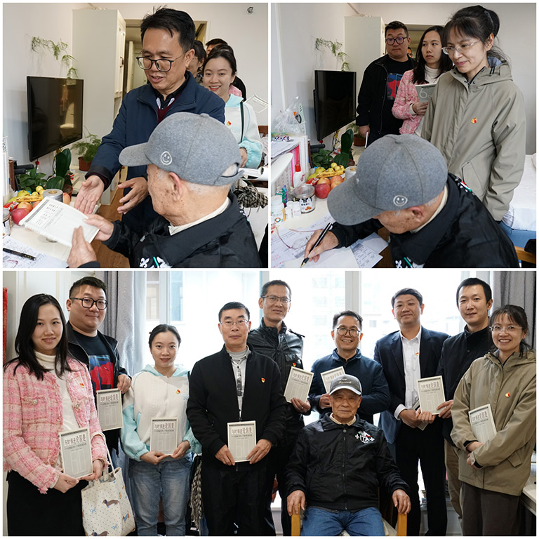 活動圓滿結(jié)束后,吳仲先爺爺熱情邀請新城投集團(tuán)第三黨支部的志愿者們來到他的房間。大家圍在吳爺爺身邊親切交談,關(guān)心地詢問他的身體狀況和生活情況。吳爺爺親手把他編著的書籍——《與時(shí)俱進(jìn)論國是》贈予每一位志愿者,并在書上寫下溫馨寄語。這些飽含深情的親筆贈言,流露出吳爺爺堅(jiān)強(qiáng)的意志、奉獻(xiàn)的精神和始終如一的初心,讓在場的每個(gè)人都深受感動。