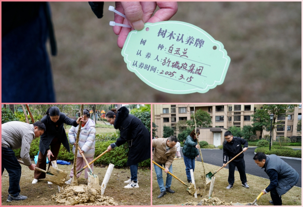 隨后,志愿者們在小區(qū)內(nèi)開展了植樹活動。他們揮鍬鏟土、扶樹正苗、澆水培土,和居民們一起在小區(qū)草坪處種下一排白玉蘭樹。經(jīng)過一番辛勤勞動,一棵棵新栽的白玉蘭樹苗在春風(fēng)中挺拔而立,為小區(qū)增添了一抹盎然的綠意。這些樹苗不僅美化了小區(qū)環(huán)境,也為居民們營造了一個更加綠色、溫馨的居住條件。