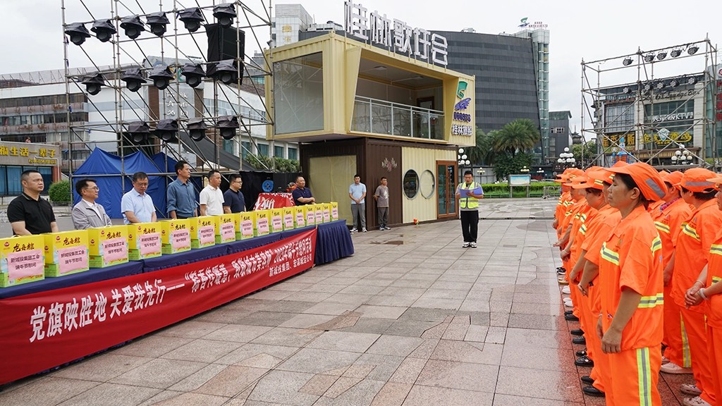 黨旗映勝地 關(guān)愛(ài)我先行——新城投集團(tuán)聯(lián)合宏謀城運(yùn)公司開(kāi)展“粽香傳暖意,致敬城市美容師”2025年端午節(jié)慰問(wèn)活動(dòng)