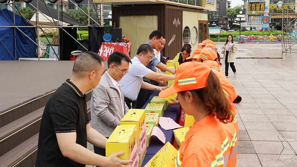 為深入踐行習(xí)近平總書(shū)記“以人民為中心”“勞動(dòng)最光榮”的指導(dǎo)思想,切實(shí)把組織關(guān)懷送到基層勞動(dòng)者心坎上,進(jìn)一步提升環(huán)衛(wèi)職工隊(duì)伍的職業(yè)認(rèn)同感和幸福感,2025年5月29日端午節(jié)前夕,新城投集團(tuán)聯(lián)合宏謀城運(yùn)公司在秀峰區(qū)中心廣場(chǎng)舉辦“粽香傳暖意,致敬城市美容師”端午節(jié)慰問(wèn)活動(dòng)。此次活動(dòng)得到市城管委,秀峰區(qū)政府、城管局、環(huán)衛(wèi)站的大力支持與指導(dǎo)。市城管委黨組成員、副主任蔣毅出席活動(dòng)。受新城投集團(tuán)黨委書(shū)記、董事長(zhǎng)朱毅委托,黨委副書(shū)記、紀(jì)委書(shū)記、工會(huì)主席譚力源代表集團(tuán)黨委、領(lǐng)導(dǎo)班子及全體職工,向奮戰(zhàn)在環(huán)衛(wèi)一線(xiàn)的干部職工致以節(jié)日問(wèn)候。