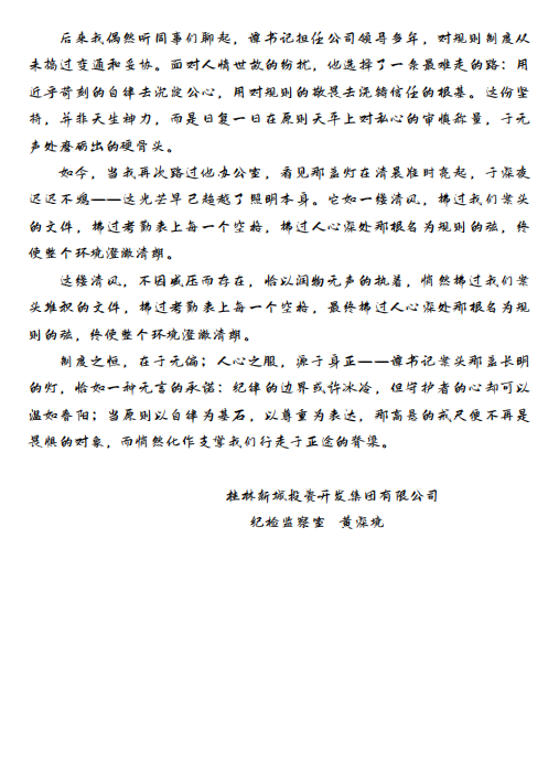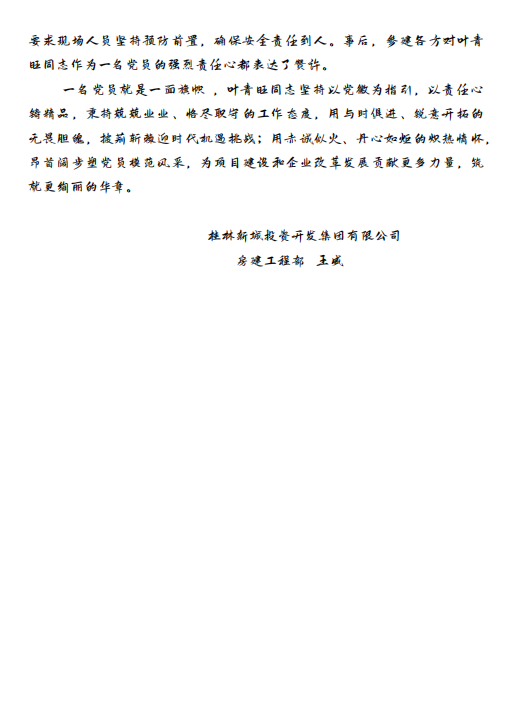 新城投集團黨委將以本次征文比賽為契機,持續(xù)創(chuàng)新黨建活動形式,推動黨建工作與業(yè)務(wù)工作深度融合。下一步,各個支部將通過更多的多樣化載體,引導黨員在崗位上亮身份、作表率,為集團高質(zhì)量發(fā)展和“黨旗映勝地”品牌建設(shè)注入源源不斷的“紅色動能”。