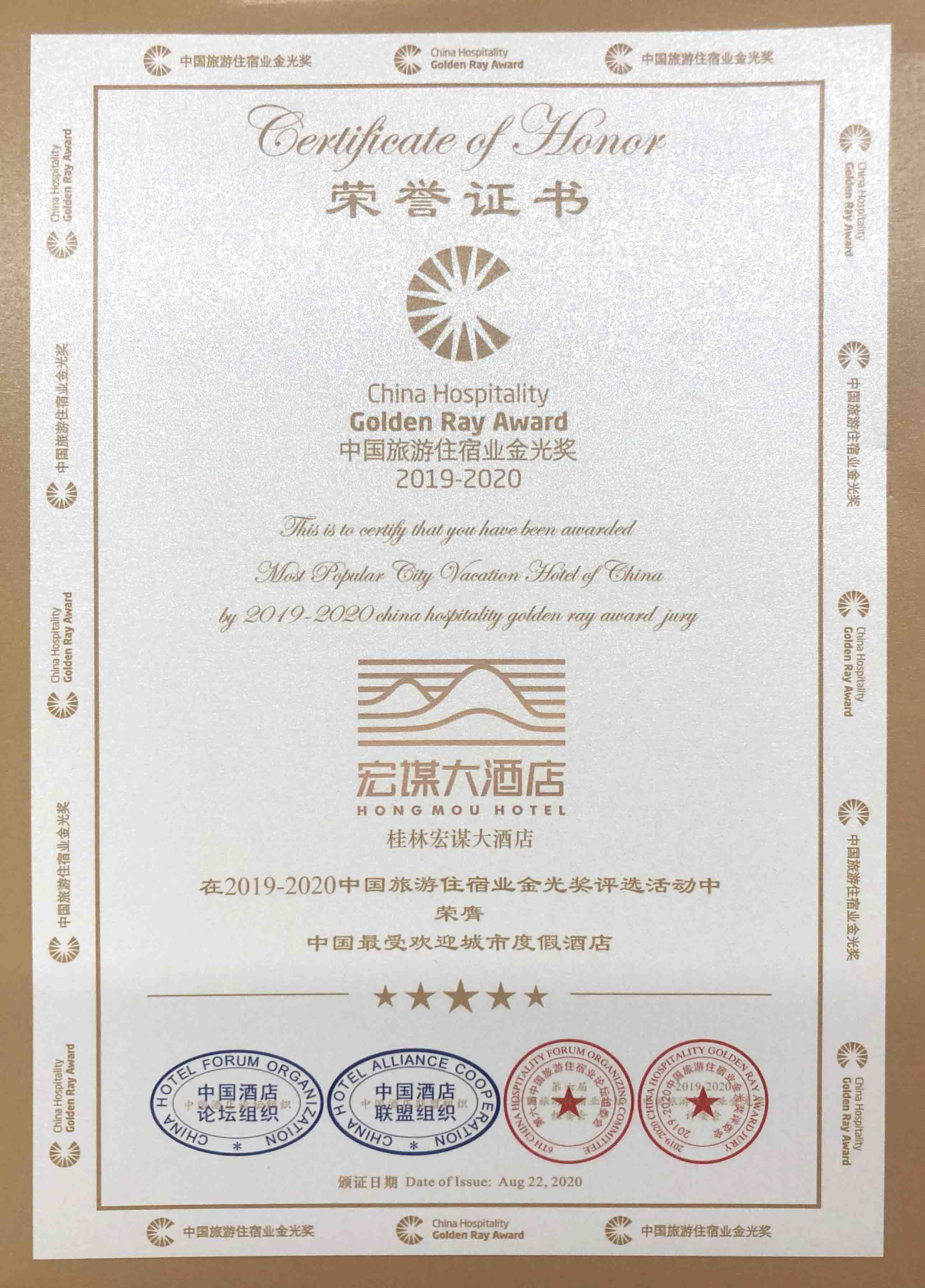 喜報!桂林宏謀大酒店榮獲中國酒店金光獎兩項殊榮