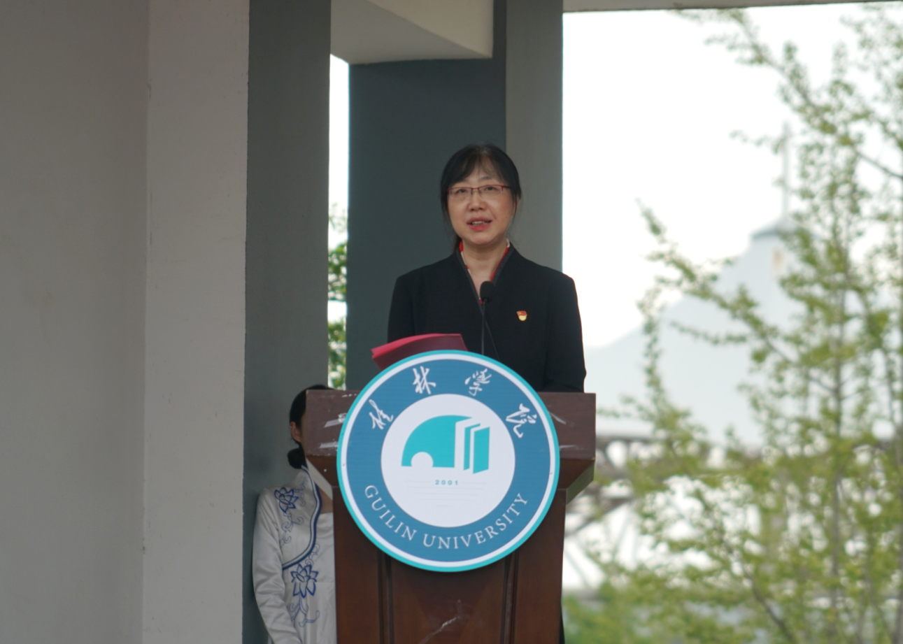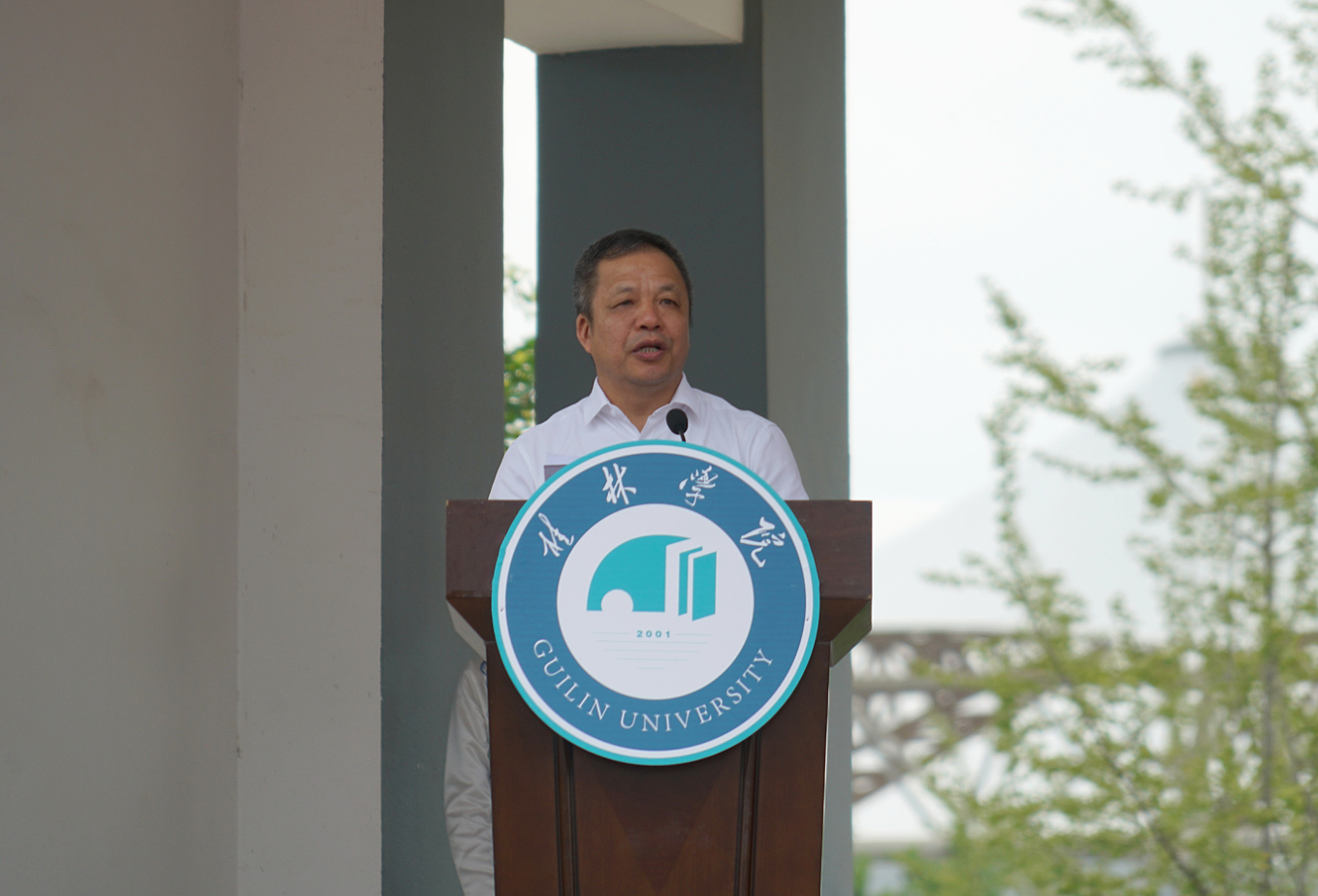 周道林表示,作為桂林學(xué)院的首屆新生,大家是學(xué)校新發(fā)展的見證者和參與者。為了給大家創(chuàng)造更好的學(xué)習(xí)環(huán)境,提供更好的發(fā)展平臺,學(xué)校將認真貫徹落實教育部致自治區(qū)人民政府《關(guān)于同意廣西師范大學(xué)漓江學(xué)院轉(zhuǎn)設(shè)為桂林學(xué)院的函》等文件精神,加大辦學(xué)投入,進一步完善辦學(xué)條件,按照“做強新文科、壯大新工科、拓展新農(nóng)科和新醫(yī)科”的基本思路,實施“強基礎(chǔ)補短板、重內(nèi)涵提質(zhì)量、育特色樹品牌”戰(zhàn)略,堅定“規(guī)范高效、特色鮮明、質(zhì)量與就業(yè)雙優(yōu)的國有民辦城市大學(xué)”發(fā)展目標(biāo),全面深化教育教學(xué)改革,不斷調(diào)整優(yōu)化學(xué)科專業(yè)結(jié)構(gòu),完善現(xiàn)代大學(xué)內(nèi)部治理體系,提高適應(yīng)區(qū)域經(jīng)濟社會發(fā)展所需要的應(yīng)用型、技術(shù)技能型人才培養(yǎng)質(zhì)量,加快建成桂林人民滿意的創(chuàng)新大學(xué)、開放大學(xué)、窗口大學(xué)。今年4月,習(xí)近平總書記在桂林考察調(diào)研時,給桂林設(shè)定了打造世界級旅游城市的歷史使命。站在新的歷史起點上,希望大家要始終牢記總書記的囑托,主動將自己的學(xué)習(xí)成長、個人發(fā)展與國家的發(fā)展需求緊密結(jié)合,為國家發(fā)展貢獻自己最大的力量。更多的關(guān)注桂林市的發(fā)展,用自己的所學(xué)所長來為桂林市的建設(shè)添磚加瓦。