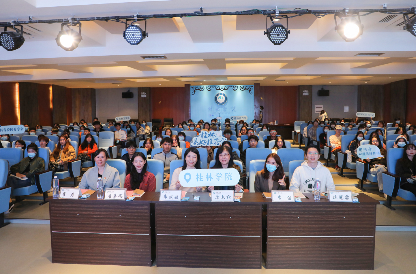 “桂林美好推薦官”話題活動由自治區(qū)文化和旅游廳、共青團廣西壯族自治區(qū)委員會、共青團桂林市委員會、桂林旅游發(fā)展總公司、桂林旅游股份有限公司共同發(fā)起。桂林學(xué)院作為桂林唯一高校承辦了此次線下抖音校園分享會。桂林各高校抖音愛好者代表參加活動。