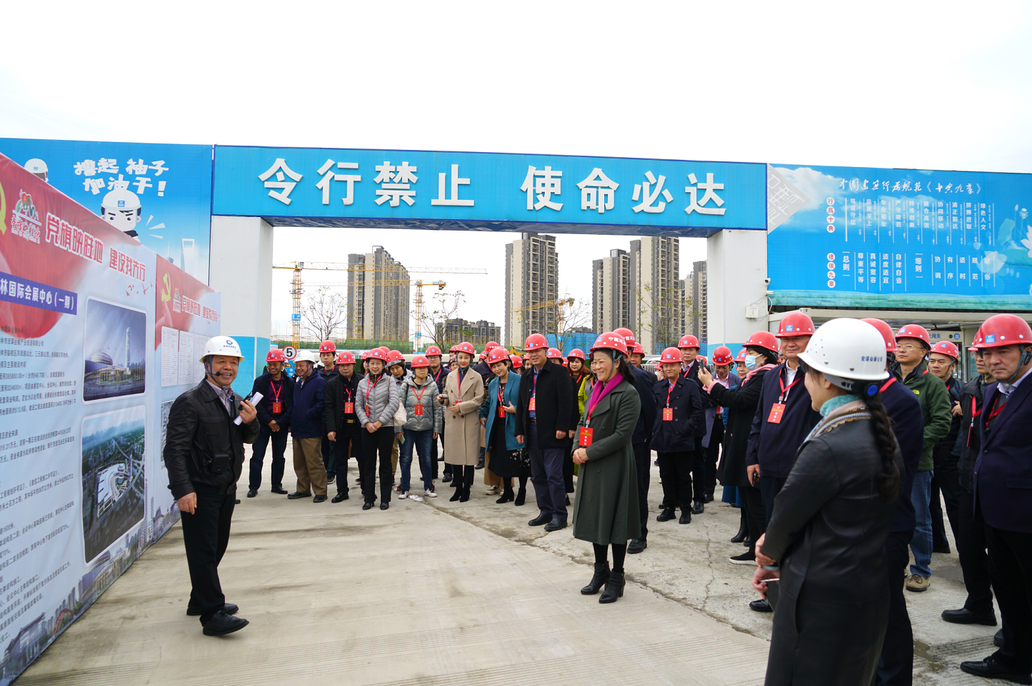 11月23日,桂林市政協(xié)組織由住桂林市自治區(qū)政協(xié)委員、市政協(xié)領導班子、市政協(xié)常委組成的視察團一行80余人,就“我市重點項目建設情況”專題對桂林國際會展中心項目進行實地調研。桂林市政協(xié)主席陳麗華,副市長蔣春華,臨桂新區(qū)管委會副主任陳清參加調研。