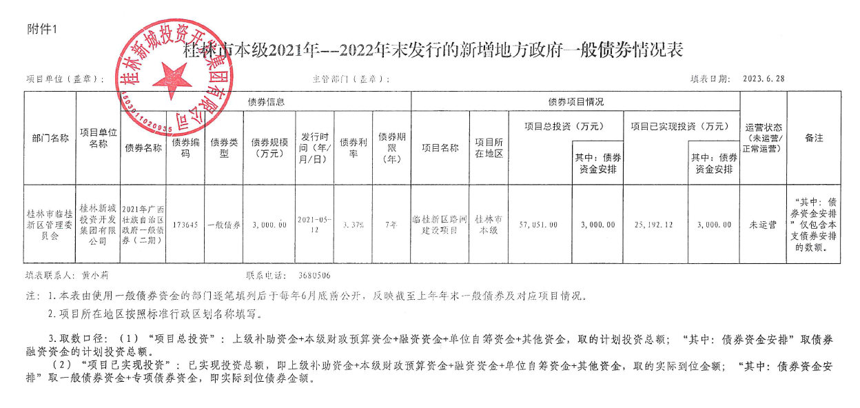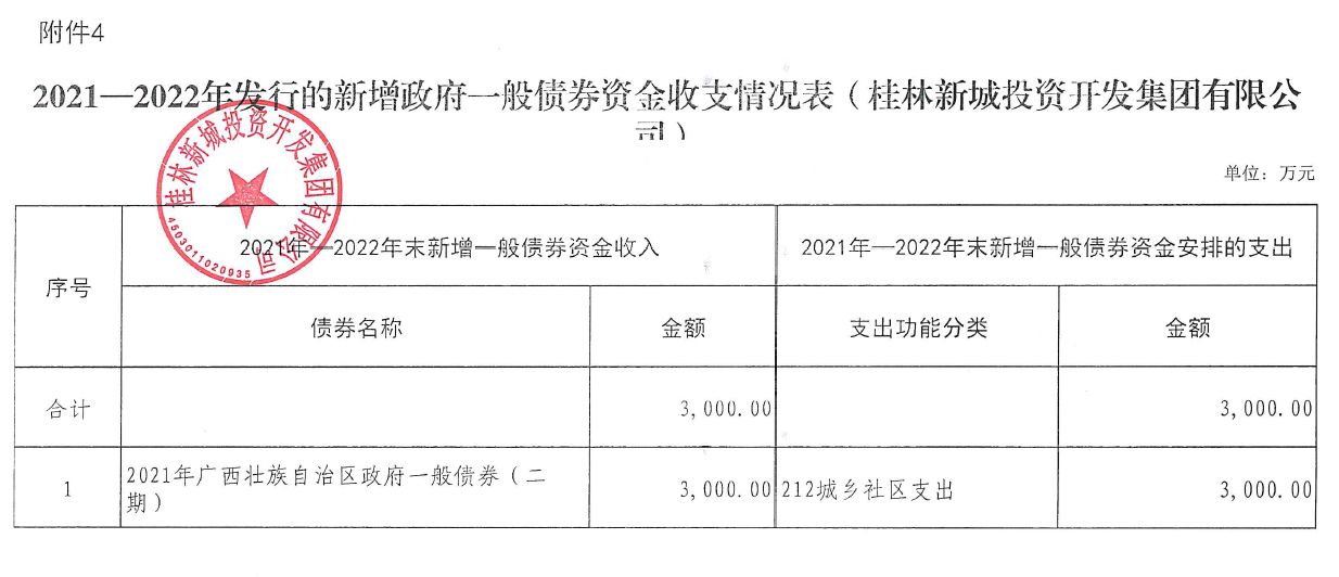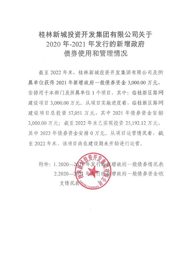 桂林新城投資開發(fā)集團(tuán)有限公司關(guān)于2020年-2021年發(fā)行的新增政府債券使用和管理情況