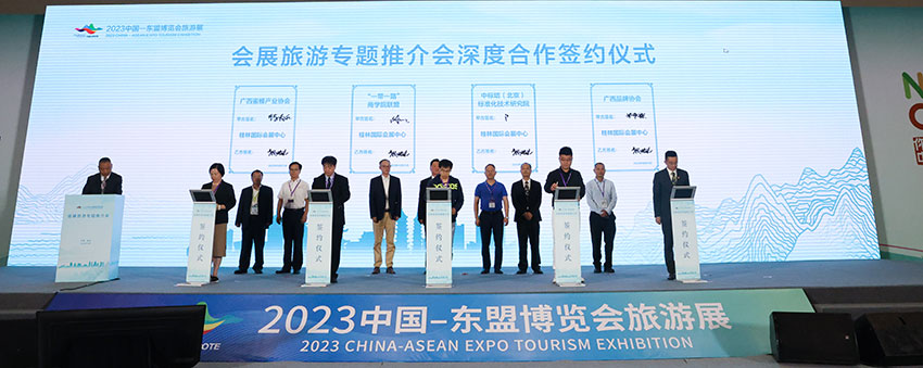 10月15日上午,由中國(guó)-東盟博覽會(huì)旅游展秘書處、首都會(huì)展集團(tuán)主辦,桂林市博覽事務(wù)發(fā)展中心、桂林城鄉(xiāng)建設(shè)控股集團(tuán)有限公司、桂林新城投資開發(fā)集團(tuán)有限公司、桂林宏謀國(guó)際會(huì)展服務(wù)有限公司、桂林米青傳媒科技有限公司聯(lián)合承辦的“2023中國(guó)-東盟博覽會(huì)旅游展會(huì)展旅游專題推介會(huì)”在桂林新國(guó)際會(huì)展中心4號(hào)展廳成功舉行。推介會(huì)當(dāng)天吸引了來(lái)自全國(guó)不同地區(qū)的學(xué)會(huì)、協(xié)會(huì)、會(huì)展相關(guān)企業(yè)等140余人參會(huì)。