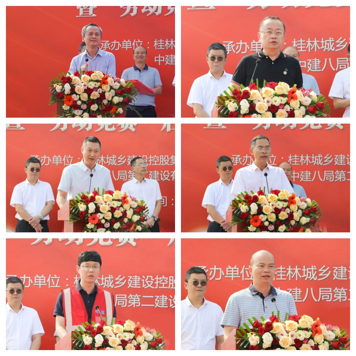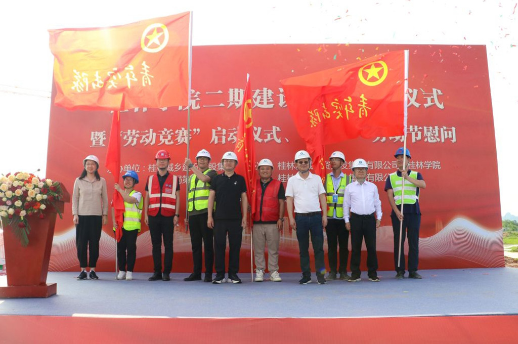 4月30日下午,桂林城鄉(xiāng)建設(shè)控股集團有限公司下屬桂林學(xué)院二期建設(shè)項目開工儀式暨“勞動競賽”啟動儀式、“五一”勞動節(jié)慰問活動在桂林學(xué)院施工現(xiàn)場隆重舉行。城建集團領(lǐng)導(dǎo)肖笛波、諸葛長、粟義春、黃江訓(xùn)、董潤秀、王巍、鄭善華,新城投集團領(lǐng)導(dǎo)朱毅、譚力源、劉敏,桂林建筑規(guī)劃設(shè)計集團有限公司黨委書記陸衛(wèi)堅,中建八局第二公司廣西公司領(lǐng)導(dǎo)王紹舉、徐海銀、柳云岳,桂林學(xué)院領(lǐng)導(dǎo)楊樹喆、唐文紅、劉文革、楊慶慶、何玲、蔣毅等共同出席儀式活動。儀式活動由桂林學(xué)院二期建設(shè)項目部總負責(zé)人、新城投集團黨委委員、副總經(jīng)理葉青旺主持。